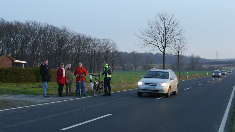„Während des Ortstermins fuhren zahlreiche Fahrzeuge mit sehr hoher Geschwindigkeit an uns vorbei“, erklärte Widow. „Als Fußgänger wird einem ganz mulmig bei den vorbeipfeifenden Fahrzeugen.“ Kaatz erinnerte daran, dass sich an gleicher Stelle vor einigen Jahren ein tödlicher Unfall ereignet hat. „Der von den Ortsräten Schandelah und Hordorf geforderte Fahrradweg entlang der Landesstraße sollte in den vordringlichen Bedarf des Radwegebaus des Landes eingestuft werden. Das Land steht hier in der Pflicht!“