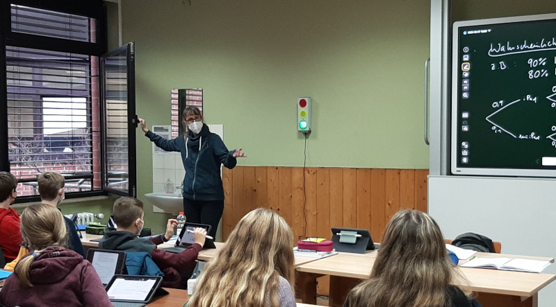 Wittberg ergänzt weiter: „Diese Lösung ist ein ganz wichtiger Baustein, um das Infektionsgeschehen in Schulen einzudämmen. Sie liefert zuverlässige Informationen auf Datenbasis und lässt eine situative Bewertung der Räume zu. Dadurch können mit „airooom“ [Bezeichnung der Infektionsschutzampeln, Fa. Fabmaker] kritische Räume mit einer erhöhten Infektionswahrscheinlichkeit identifiziert werden.