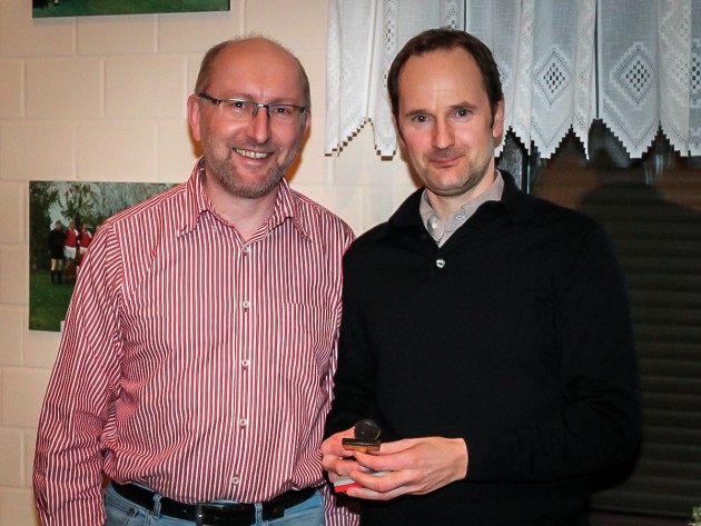 Matthias Franz (links) überreicht dem neuen Vorsitzenden Bernd Telm den historischen Stempel der SPD Schandelah.